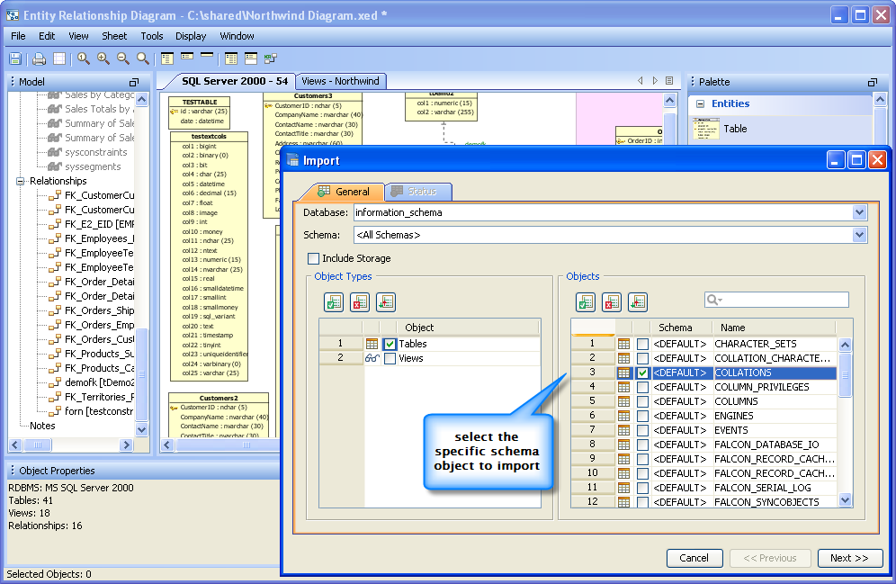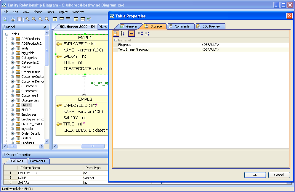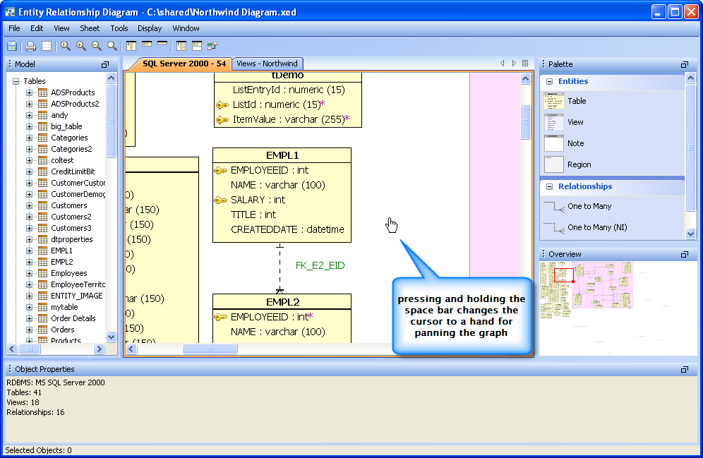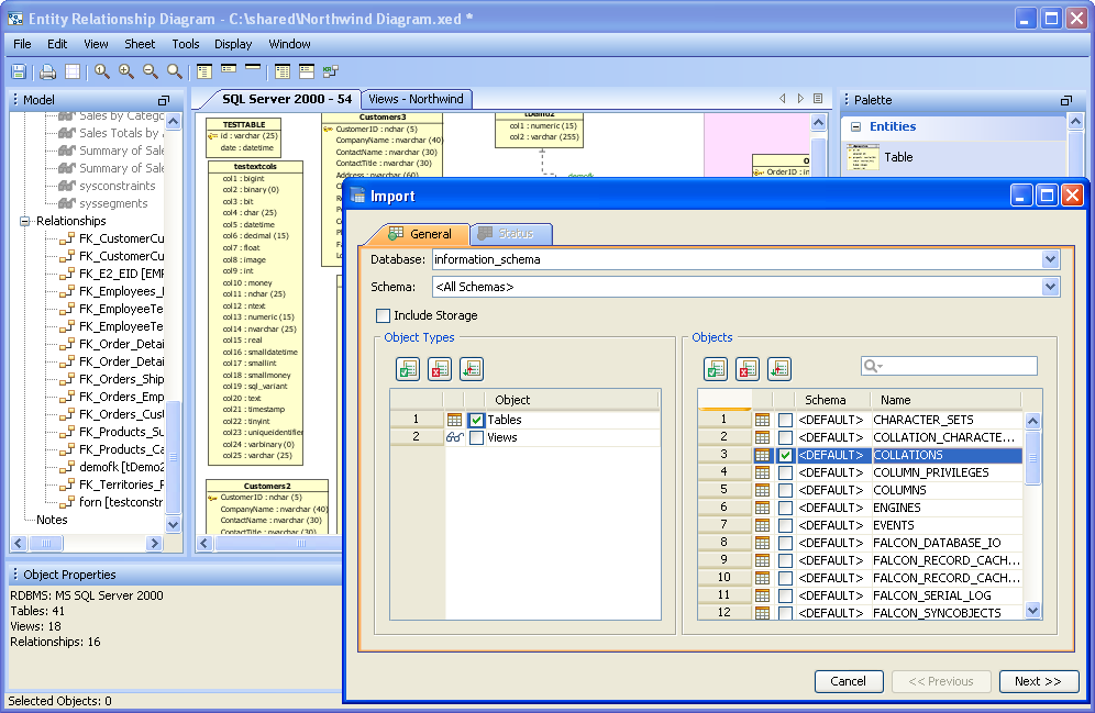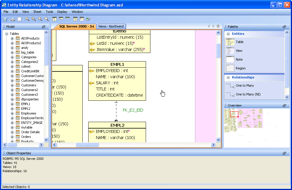 Rendering Optimization: Now the ER Modeler is able to open extremely large (more than 2000 tables and 2000 relationships) models. It can also render dashed relationship lines as thin gray lines, with the new Window->Faster Rendering option. This option vastly increases the number of tables and relationships that can be shown in a single sheet.