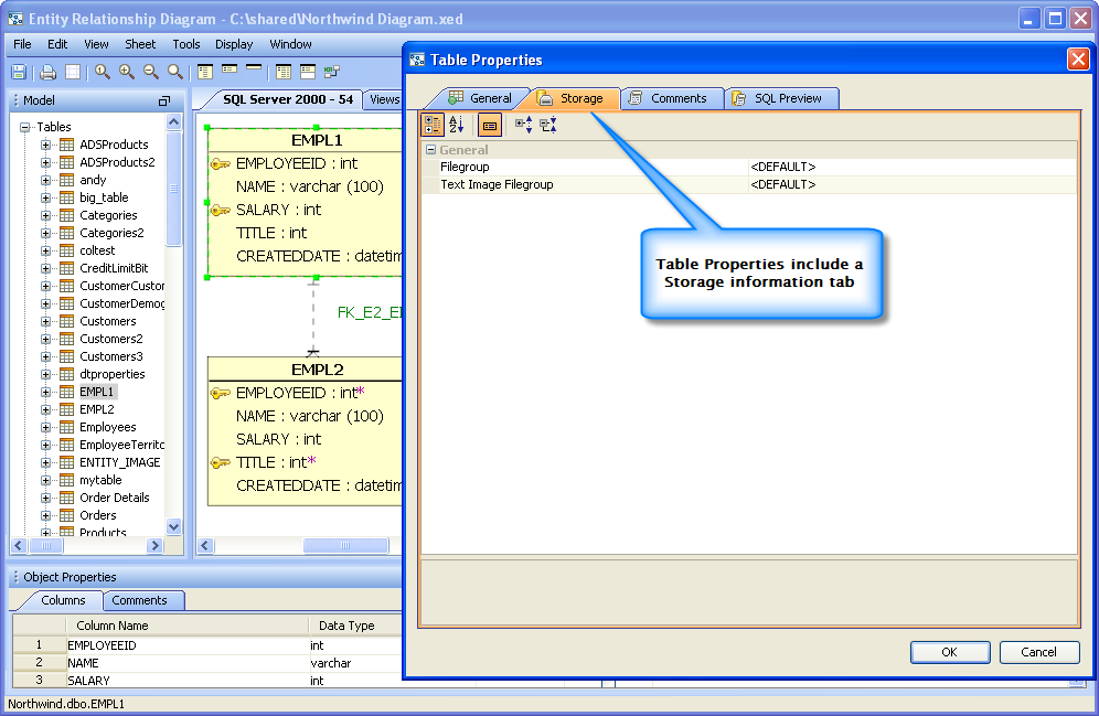 Table Storage Options: Tables now support "Storage" options definitions so that Table Storage information is included in database models.