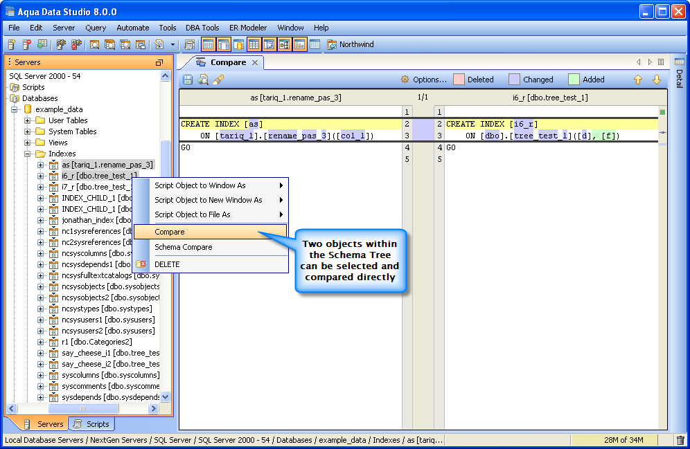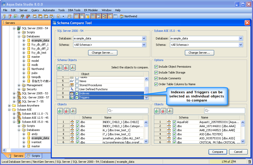 Triggers & Indexes: Triggers and Indexes can be selected as individual objects for comparisons.