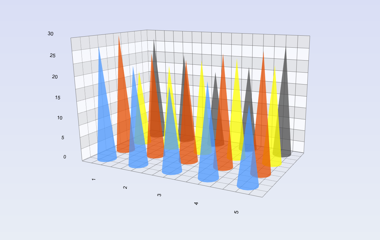 | 3D Pyramid | 3D Cones Chart | 3D Thin Columns Chart | 3D Oblique Bar Chart |